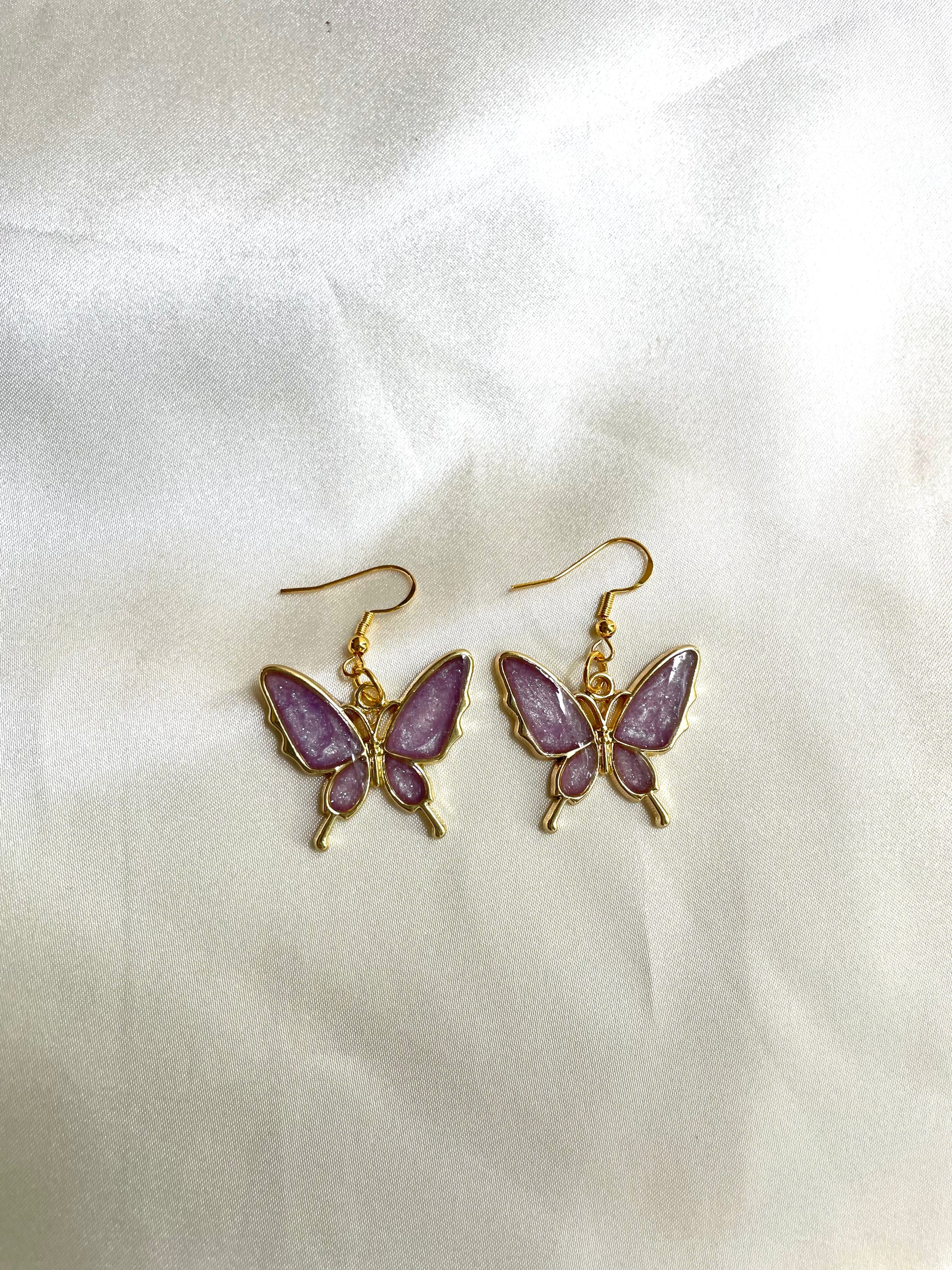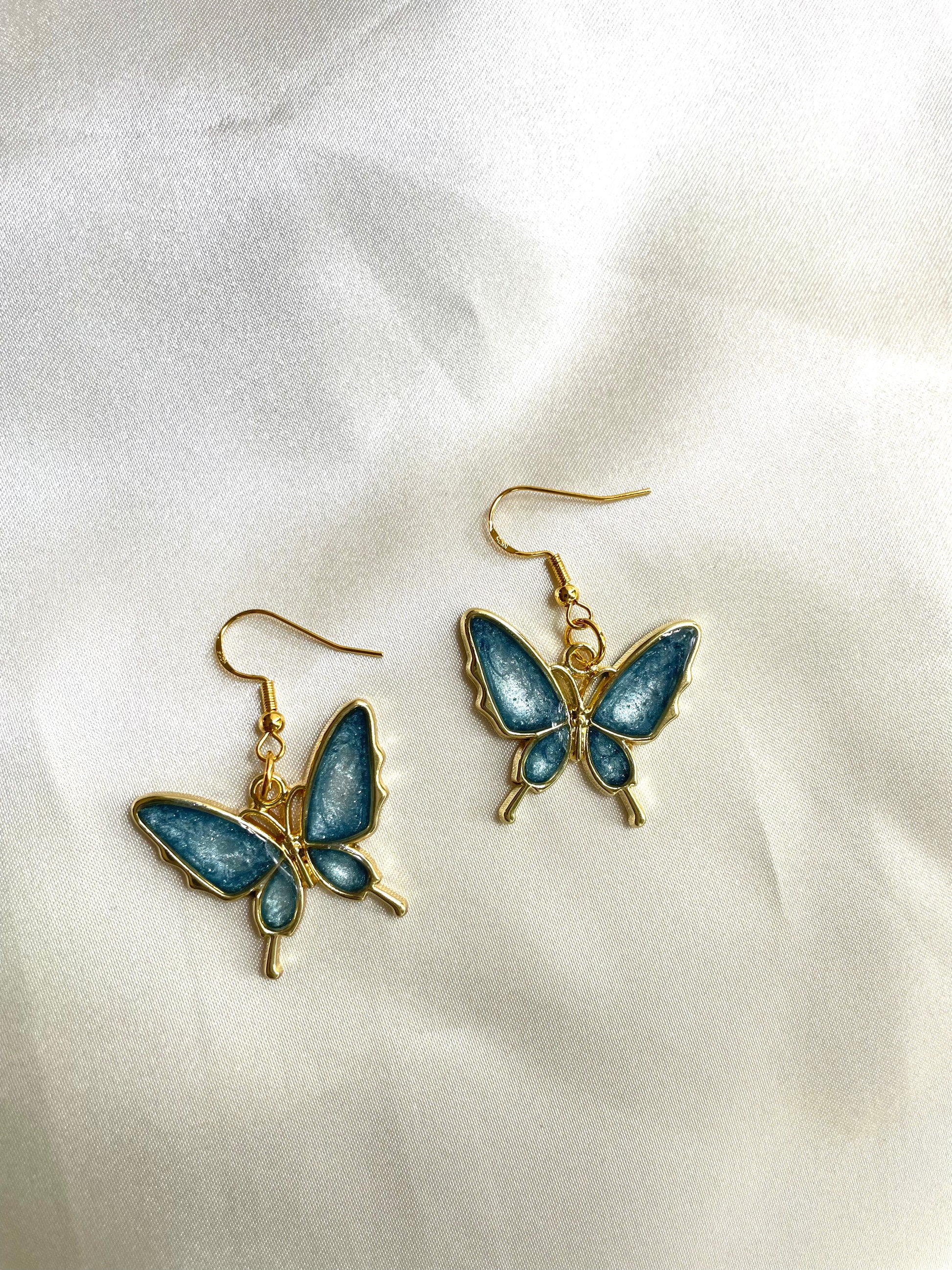 Pendientes de mariposa dorada, diseño de resina brillante.