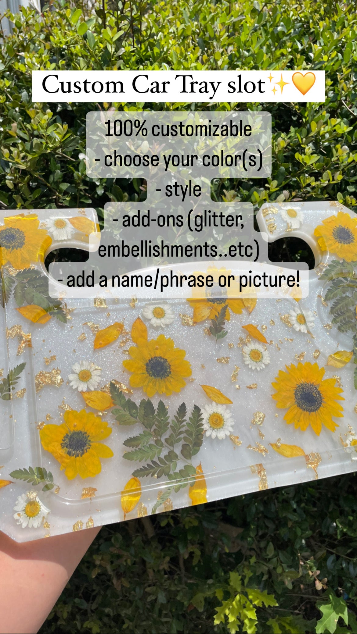 ¡Envíame un mensaje privado en Instagram o envíame un correo electrónico a Katsfineartcreations@gmail.com sobre cómo te gustaría tu bandeja de volante personalizada!