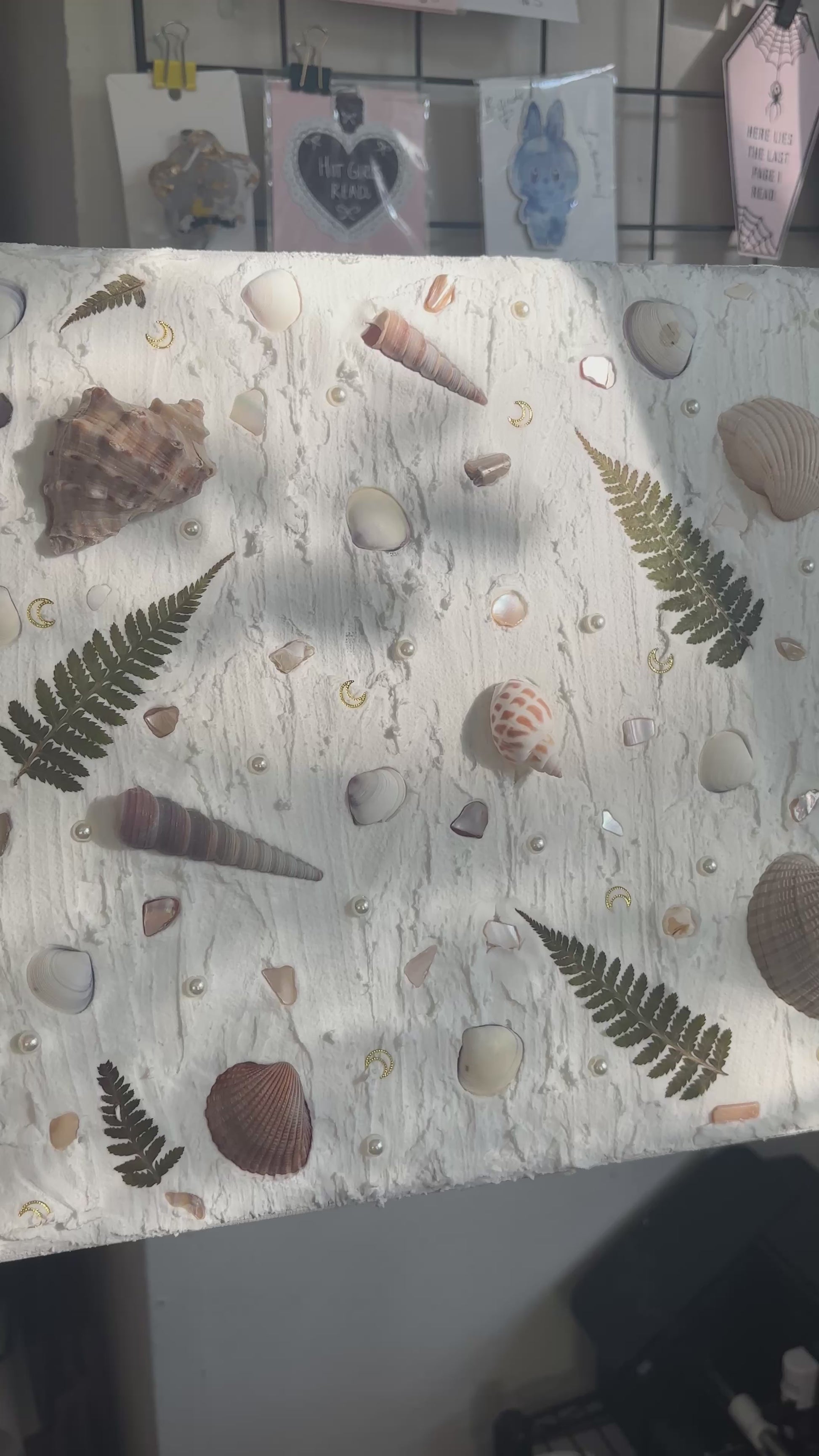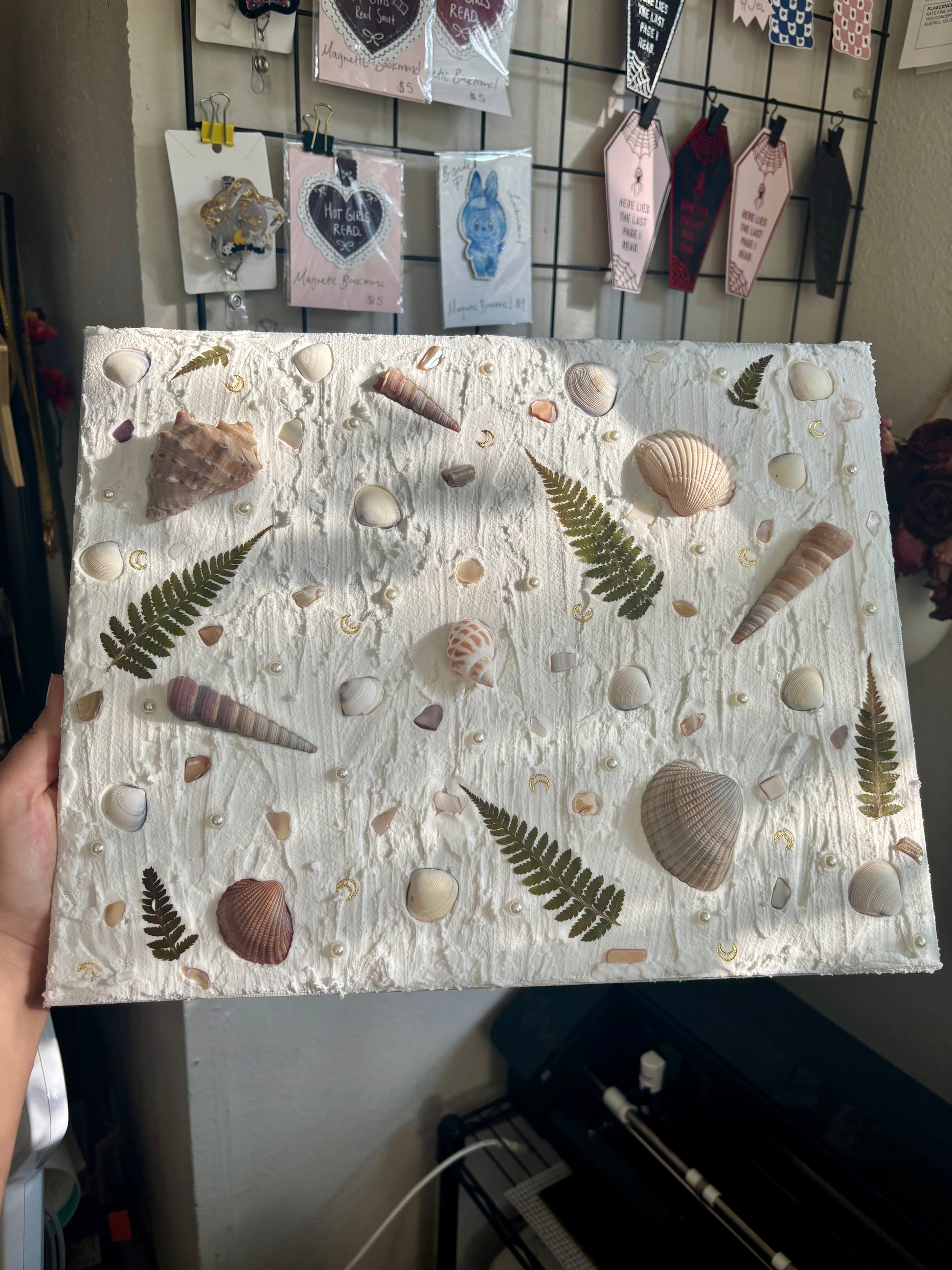 11x14 canvas art with real ferns, seashells & decorative beads.